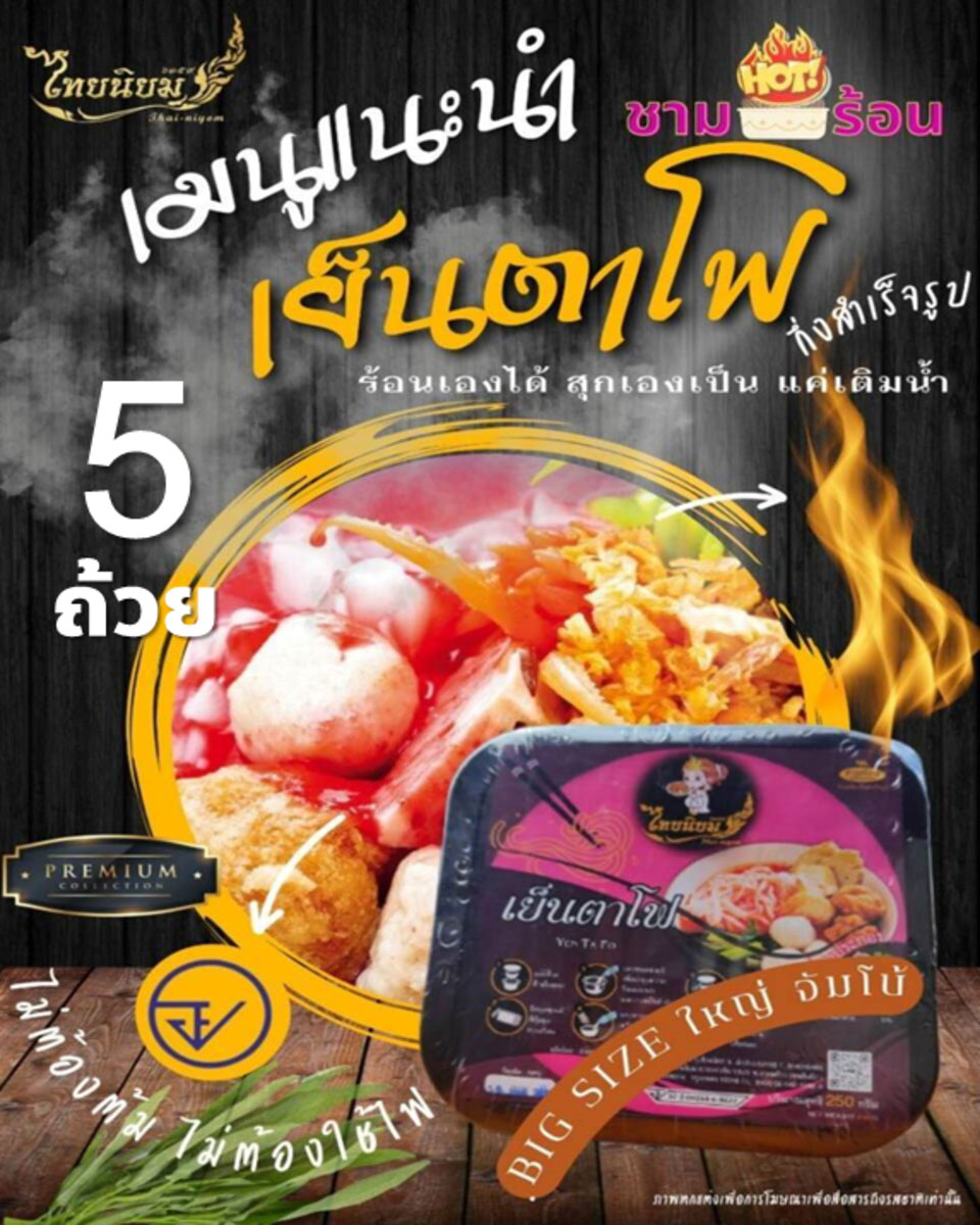 [เย็นตาโฟ] ก๋วยเตี๋ยวถ้วยร้อน ไทยนิยม ๖๓๕๙ ขนาดจัมโบ้ 250 กรัม x 5 คัพ (HC- Yen ta fo)