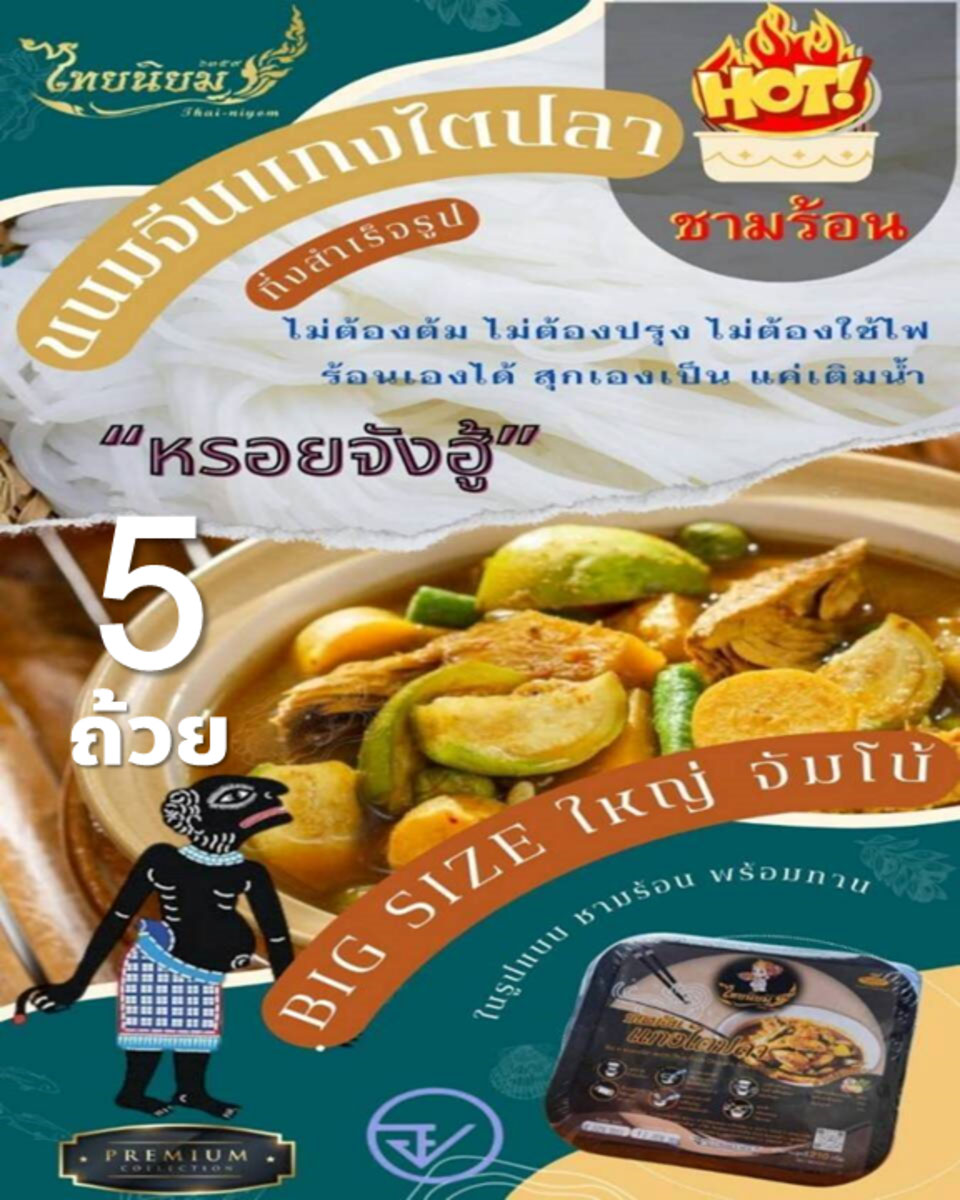 [ขนมจีนแกงไตปลา] ก๋วยเตี๋ยวถ้วยร้อน ไทยนิยม ๖๓๕๙ ขนาดจัมโบ้ 210 กรัม x 5 คัพ (HC- Rice Nooles With Fish Organs Sour Soup)